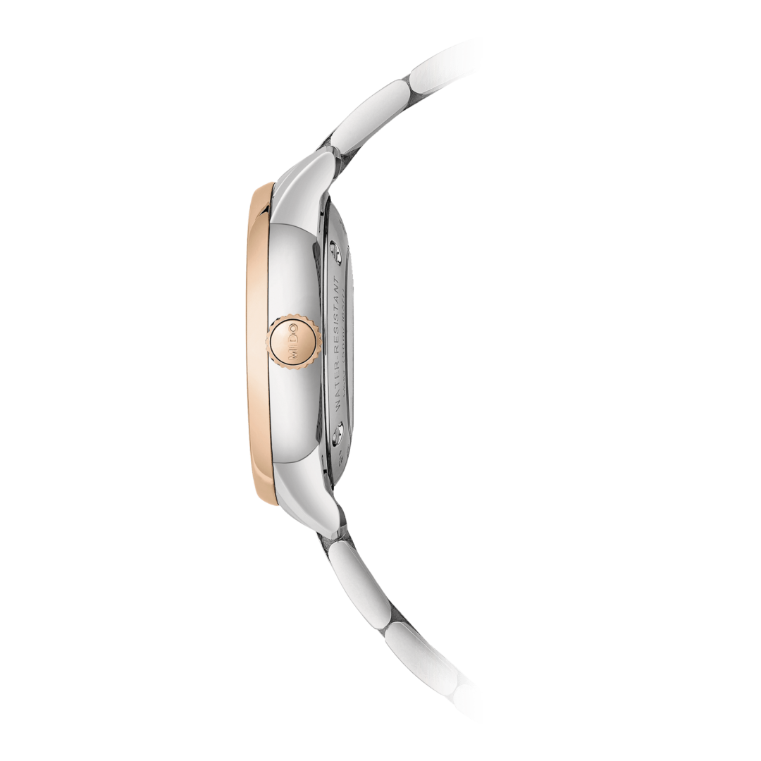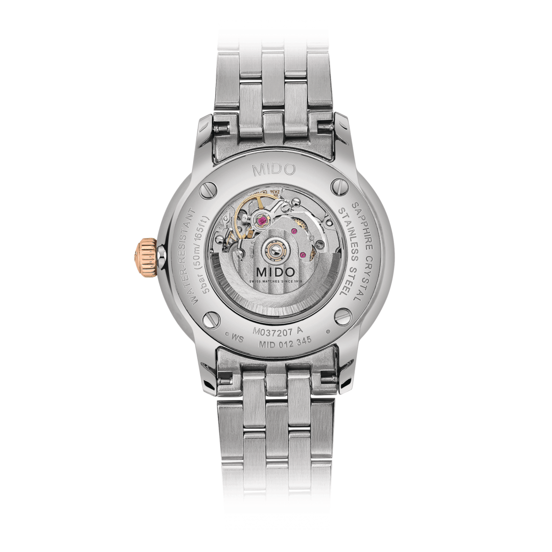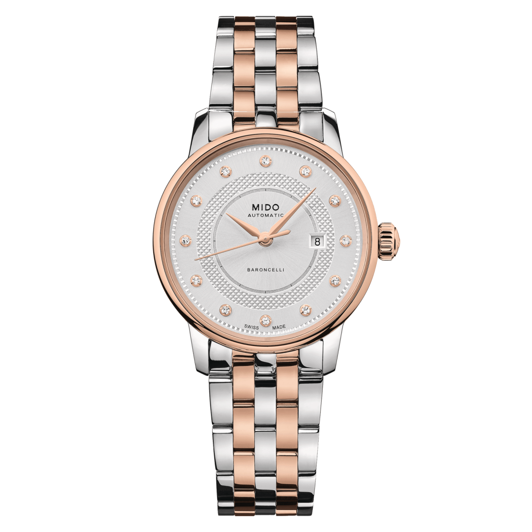 A párként tervezett Baroncelli Heritage svájci órákat könnyűségük, karcsúságuk és rendkívül tiszta vonalvezetésük különbözteti meg, amelyet a kétoldalas mutatók és a dupla gadroon biztosítanak. Ezek a klasszikus és időtálló, automata szerkezetű órák a Mido szakértelmének tökéletes kifejeződései.