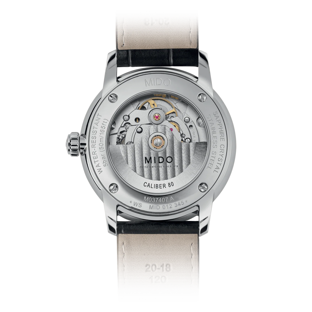 A párként tervezett Baroncelli Heritage svájci órákat könnyűségük, karcsúságuk és rendkívül tiszta vonalvezetésük különbözteti meg, amelyet a kétoldalas mutatók és a dupla gadroon biztosítanak. Ezek a klasszikus és időtálló, automata szerkezetű órák a Mido szakértelmének tökéletes kifejeződései.
