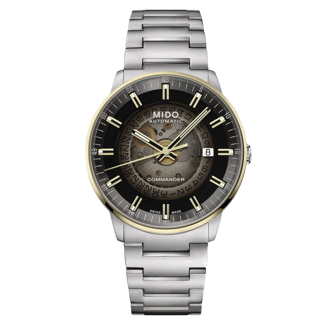 Férfi órák luxus órák luxus karórák webshopja Mido Commander Gradient 40mm acél tok acél csat. Az óra ezen funkciókkal rendelkezik: naptár. Szerkezet típusa: mechanikus óra automata felhúzással, vízállóság: 50 m, számlap színe: fekete, szíj anyaga: acél.