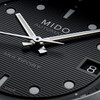Mido Multifort 8 Two Crowns matt fekete számlappal és acélszürke fémszíjjal, a képen a modell vízszintesen barázdált számlapja látható, modellszám: M047.507.11.051.00