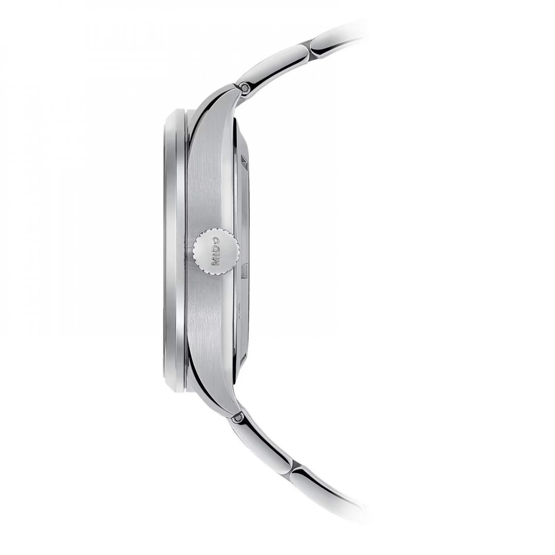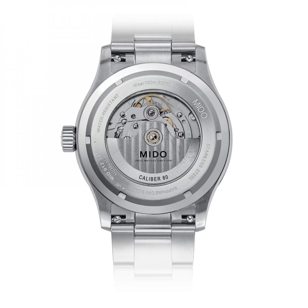 A Multifort M színátmenetes számlapján a függőleges selyemfényű csiszolás a kollekcióra jellemző Côtes de Genève díszítés alapján készült. A makulátlan Super-LumiNova® a mutatókon és a kerek indexeken jó kontrasztot és leolvashatóságot teremt. A Multifort legendás robusztussága a híres Caliber 80 mechanikus óraszerkezet ritmusát követi. Az akár 80 órás járástartalékot a Nivachron™ - egy forradalmi anyagból készült, félelmetes pontosságot kínáló - hajszálrugóval kombinálják. A MIDO a Multifort M-et egyszerű szíjcsere-rendszerrel kínálja, acél vagy textil borítású gumi változatban.
