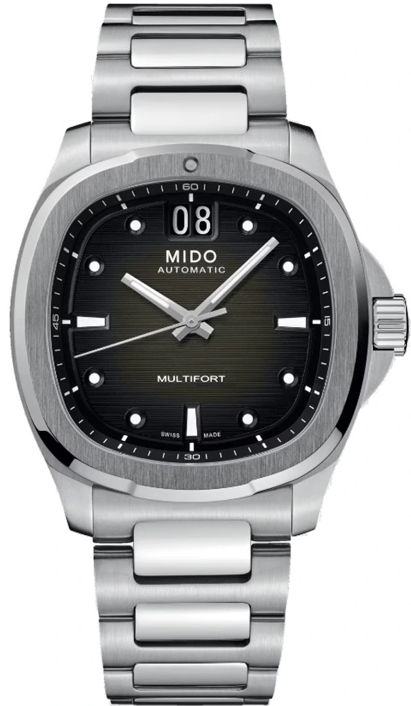 Egy zseniális flashback! A Mido rendkívüli örökségéből született, a TV-alakú tok visszatér a középpontba a Multifort TV Big Date esetében, amely éppoly intenzív, mint amilyen pontos, köszönhetően a félelmetes mechanikus szerkezetnek. Ennek a svájci órának a modern és dinamikus kialakítását a feltűnő, vízszintes, csiszolt felületű számlap és a jellegzetes funkcióval együtt a 12 óránál lévő BIG DATE felirat hangsúlyozza. Félelmetes, legújabb generációs automata óraműve, a Calibre 80 egy csúcstechnológiás Nivachron™ egyensúlyi rugóval van felszerelve, amely kiemelkedő ellenállást biztosít az ütésekkel és a mágneses mezőkkel szemben.