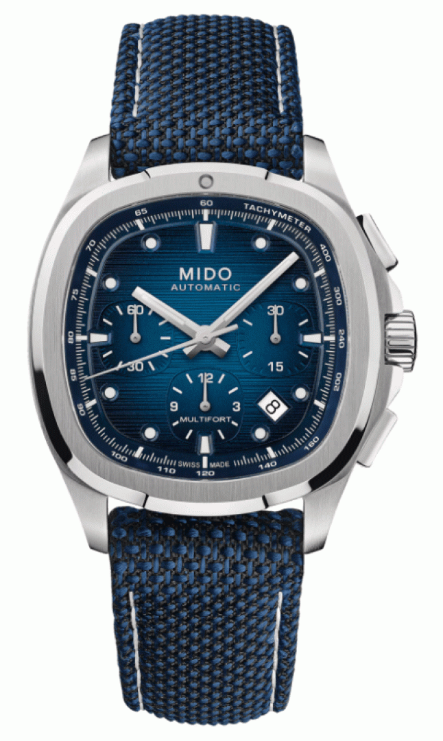 A MIDO merész szellemiségéhez hűen a Multifort TV Chronograph egyedisége a TV-formájú tokjában rejlik. Modern megjelenését vízszintesen csiszolt számlap, két beépített segédszámlap és kontrasztos részletek emelik ki. Mozgatója a Caliber 60 svájci automata szerkezet, amely akár 60 órás járástartalékot biztosít. Technikás, karakteres és kiegyensúlyozott óra, amely a mindennapok különleges pillanataihoz készült.