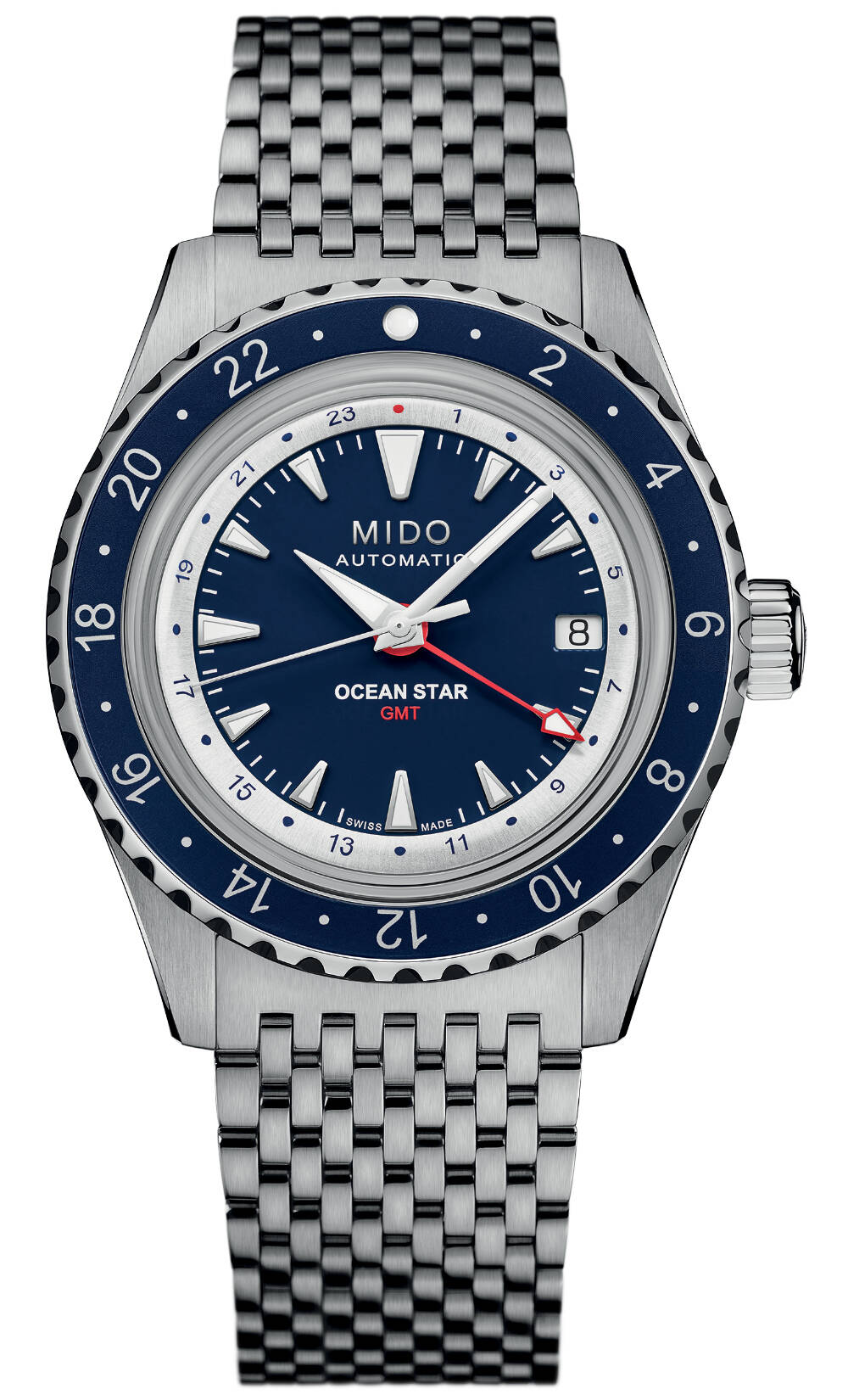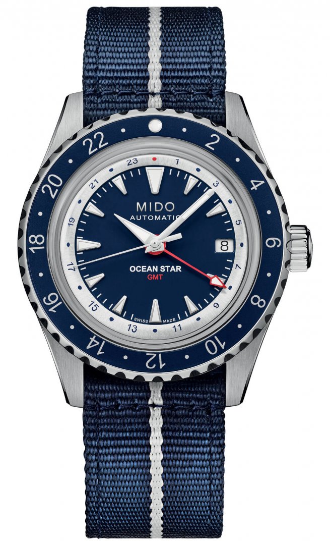 Férfi órák luxus órák luxus karórák webshopja Mido Ocean Star GMT 40.5mm acél tok, acél szíj + szövet szíj.