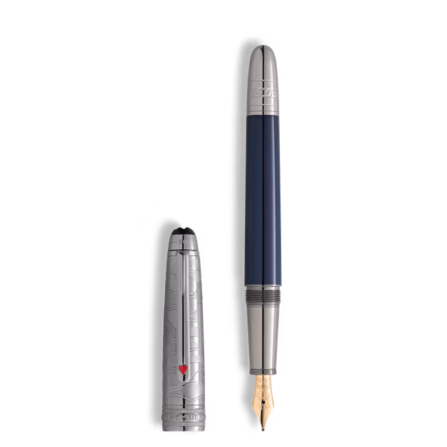 A Meisterstück „80 nap alatt a Föld körül” kollekciója Jules Verne híres kalandregényéből merít ihletet. A csiszolt, sötétkék, értékes lakkborítású, fém kupakkal díszített Solitaire Doué Classique töltőtoll Mr. Fogg és Passepartout hősi utazását idézi fel. A Yokohamából induló, az Egyesült Államokon át Londonba vezető utolsó szakaszon a páros vonattal szeli át a hatalmas amerikai kontinenst. Merüljön el a bonyolult részletekben – a kupakon elegánsan lézerrel gravírozott vonat, a kúpon biztonsági lánc mintázat, amely tükrözi azt a döntő pillanatot, amikor Passepartout leválasztja a vonatot a mozdonyról, hogy megmentse a sziúk által megtámadott legénységet. A kupak kialakítása a nyomásszabályozó szelepeket és a mozdonyból áradó füstöt ábrázolja, míg a kapcsán egy vörösre lakkozott szív kártyajel látható, amely Phileas Fogg és Aouda hercegnő egyesülését szimbolizálja. Ezenkívül a kártyajelek Fogg merész fogadását is jelképezik, miszerint mindössze 80 nap alatt teljesíti az utazást. A kupak tetején dombornyomással látható az utazás idővonala – 36 nap Yokohamától Londonig, ami a világ körüli utazás teljes 80 napját jelenti. Ezt az íróeszközt egy kézzel készített, 18 karátos arany tollhegy emeli ki, amelyen a 14/11 és 21/12 jelölés látható – emlékeztetőül Fogg úr november 14-i yokohamai indulására és arra az ambiciózus tervére, hogy december 21-ig visszatér a londoni klubba, hogy megnyerje a fogadást. A tollhegyet egy hőlégballon ábrázolása is díszíti, utalva Jules Verne első kalandregényére.