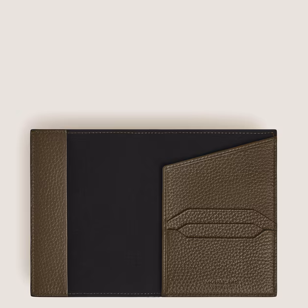 Prémium minőségű khaki színű borjúbőrből készült útlevéltartó, amely ideális útitárs üzleti utazásokhoz vagy hétvégi kirándulásokhoz. Minden nemzetközi útlevélhez illeszkedik, könnyen hozzáférhető nyitott zsebbel és egy további kis zsebbel rendelkezik, amelyben biztonságosan tárolhatja beszállókártyáját.