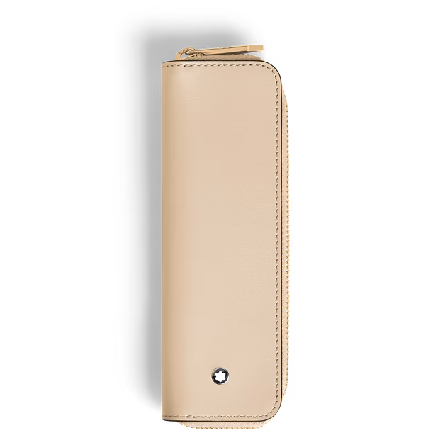 A Meisterstück Classique vagy LeGrand méretű tollak tárolására tervezett tolltartó biztonságos és stílusos megoldást kínál kedvenc íróeszközének szállításához vagy tárolásához. Sima, halvány bézs színű bőrből készült, jellegzetes tollhegy alakú cipzárhúzóval, amely tisztelettel adózik a Montblanc íróeszközök hagyományainak.