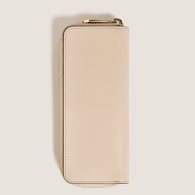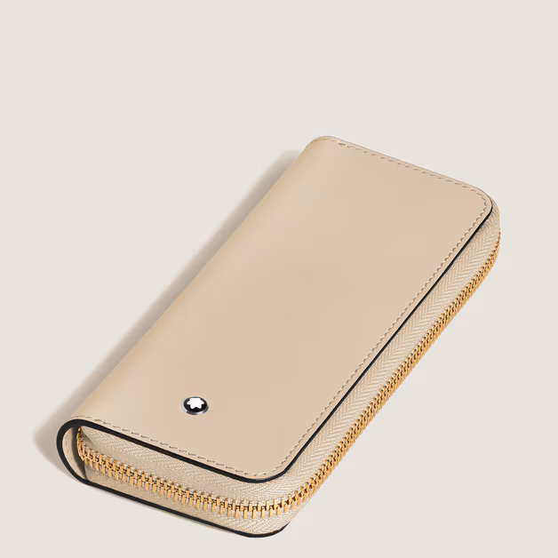 A Meisterstück Classique vagy LeGrand méretű két íróeszköz tárolására tervezett tolltartó biztonságos és stílusos megoldást kínál kedvenc tollainak szállításához vagy tárolásához. Sima, felhős bézs színű bőrből készült, jellegzetes tollhegy alakú cipzárhúzóval, amely Montblanc gazdag íróeszköz hagyományaira utal.