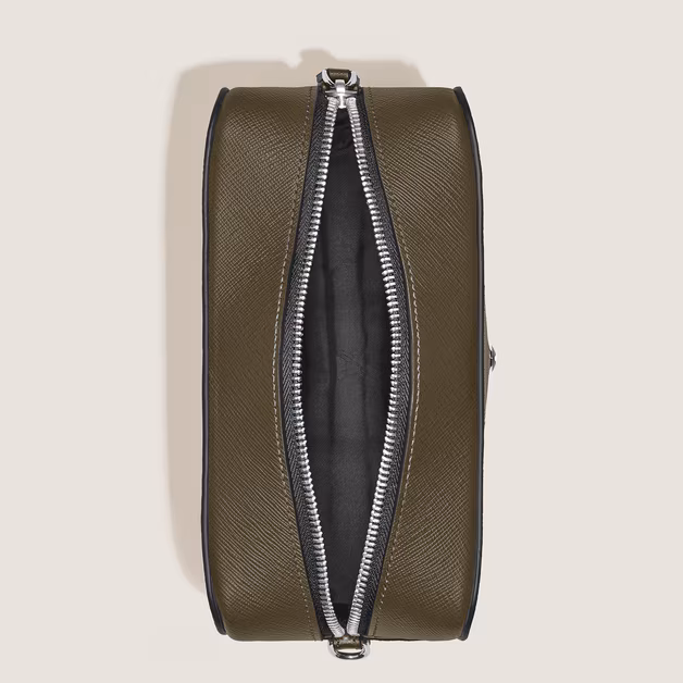 Ez a kis táska az írás világából merít ihletet, letisztult vonalai egy boríték alakját idézik. Fekete, dombornyomott Sartorial bőrből készült, cipzáras főrekesszel és belső nyitott zsebbel rendelkezik – ideális utazási kellékek tárolására, kifinomult, kompakt formában.