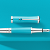 A töltőtollból, rollertollból és golyóstollból álló kollekciót türkizkék jegyzetfüzet teszi teljessé.