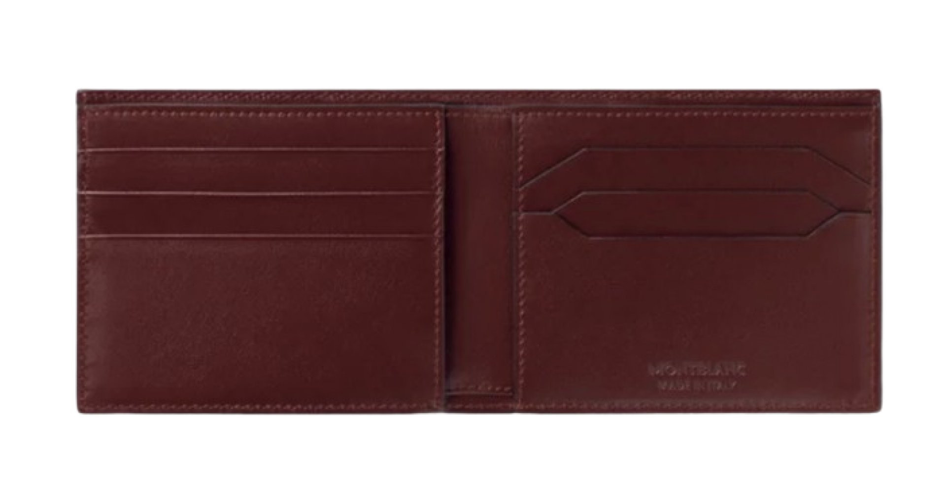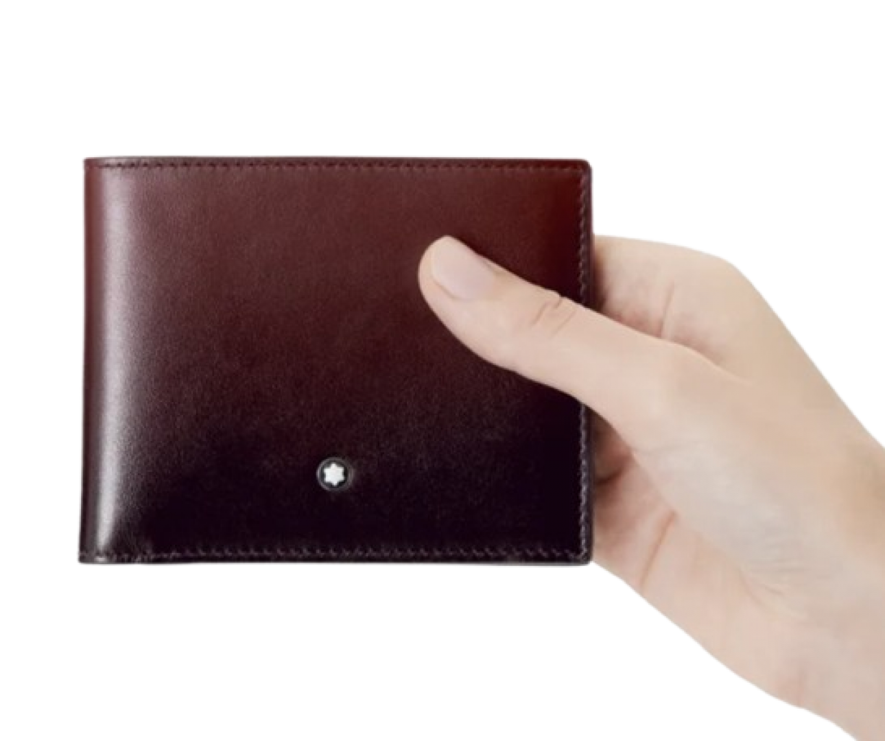 A Meisterstück pénztárca, amely a mindennapok igényes kiegészítője, kézzel felhordott sfumato hatású díszítéssel. Hat hitelkártya könnyedén elfér benne, és bőséges helyet biztosít két rekesszel a készpénz és a nyugták számára, valamint két további zsebbel rendelkezik.