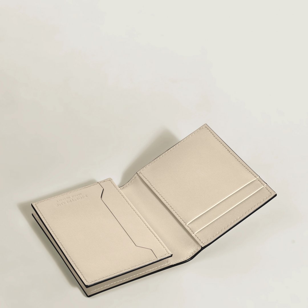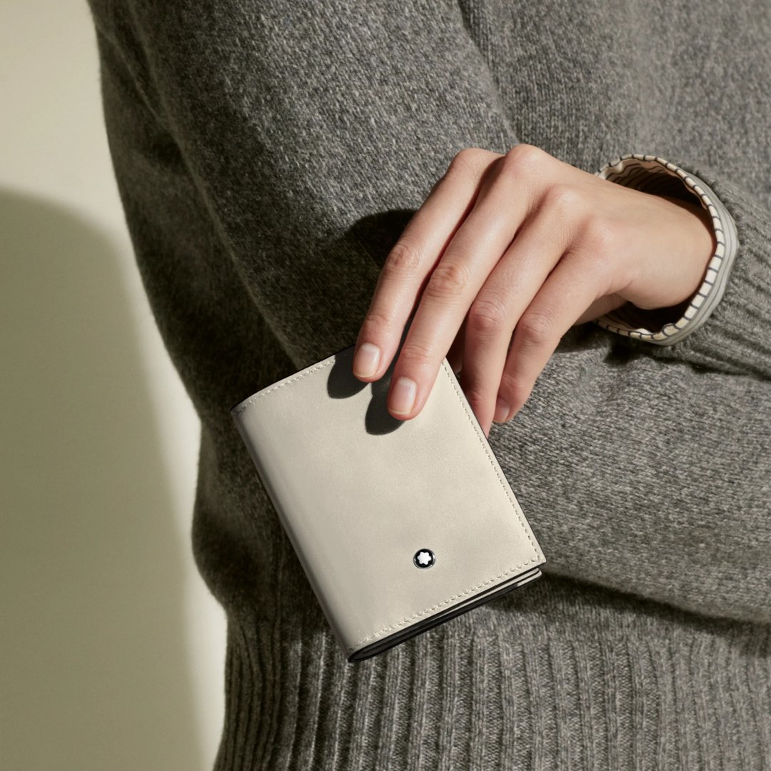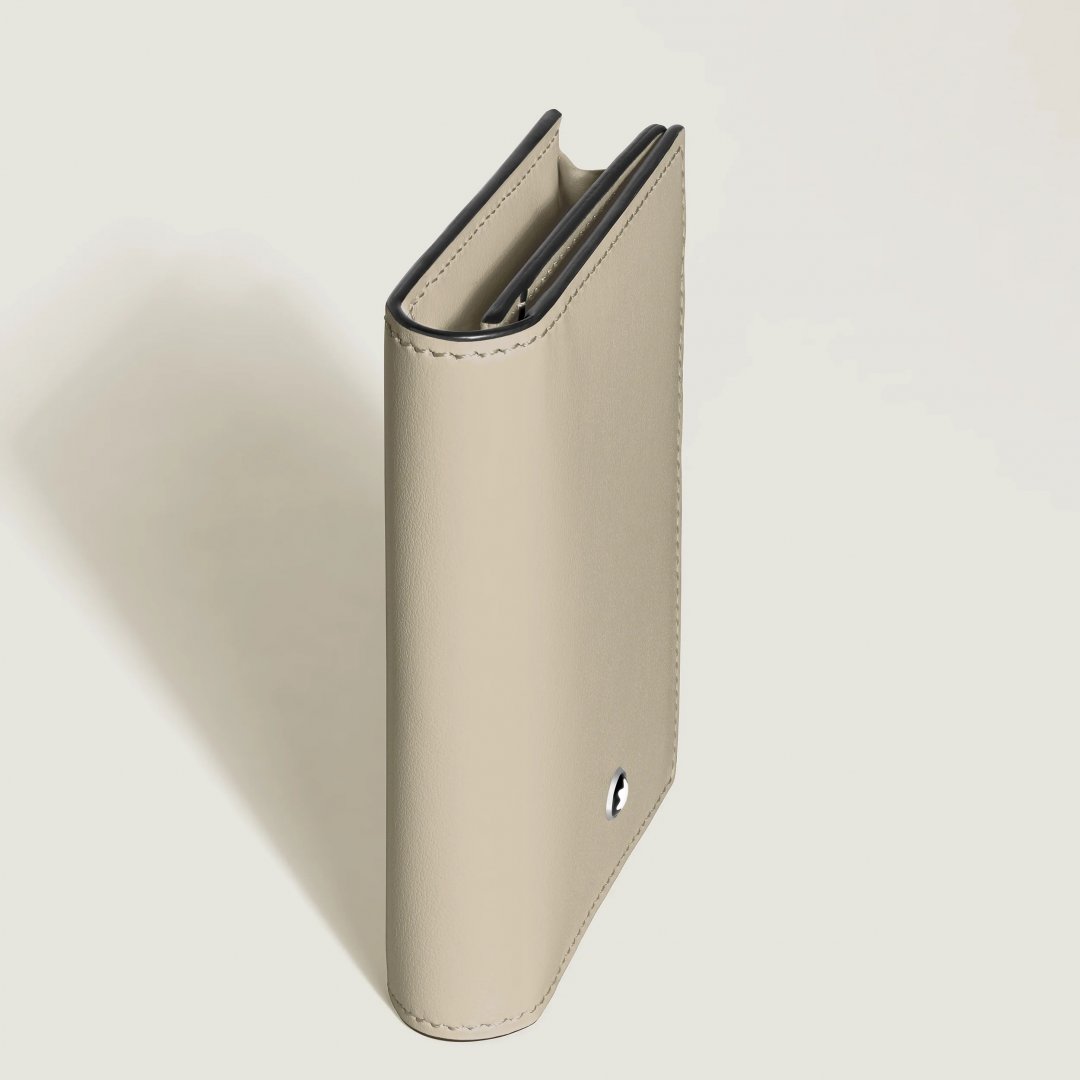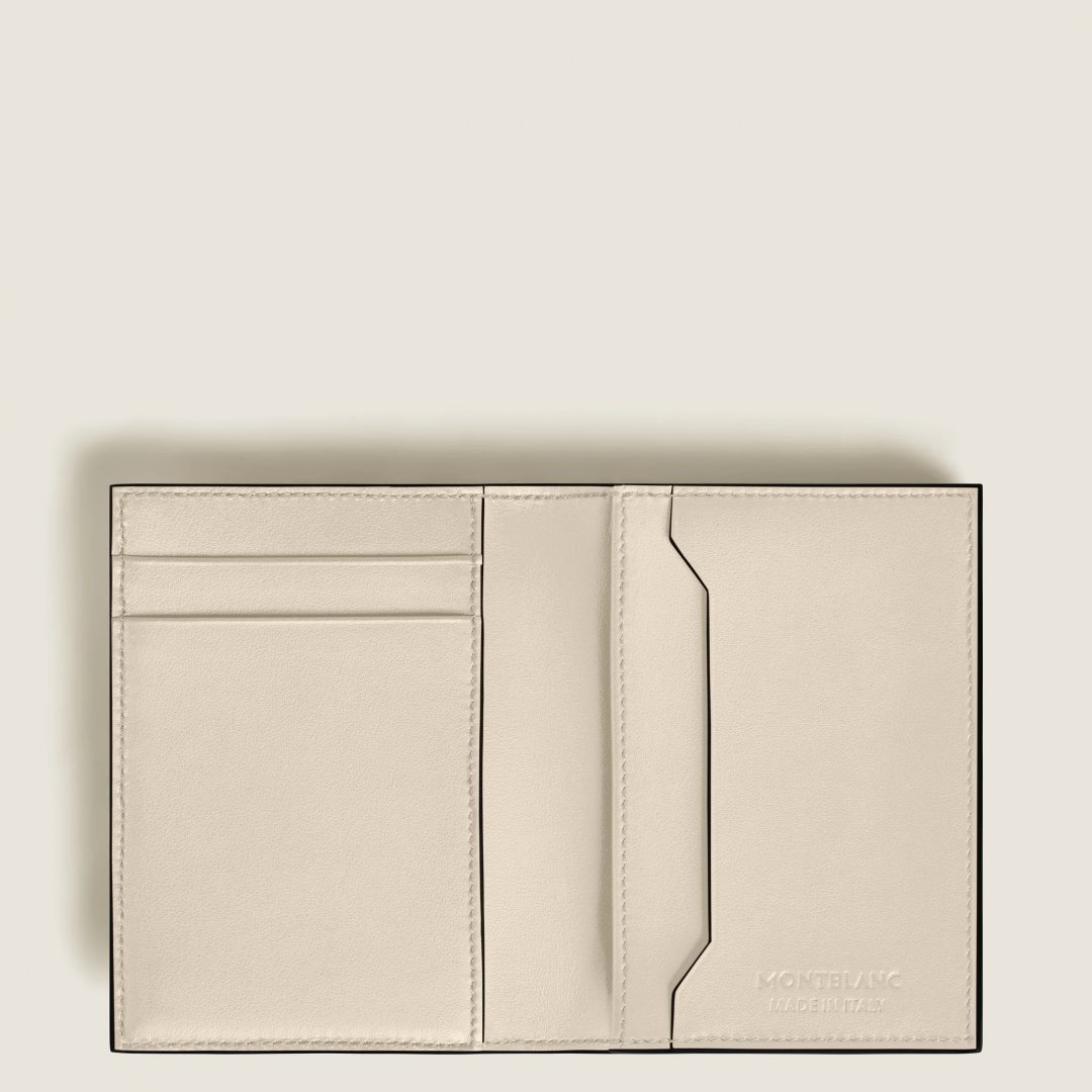 Ez a praktikus kártyatartó egy nagy méretű rekesszel rendelkezik a névjegykártyák számára, valamint négy zsebbel hitelkártyák számára. Mélyfényű, bézs színű bőrből készült, az elülső oldalon Montblanc emblémával díszítve.