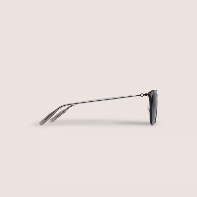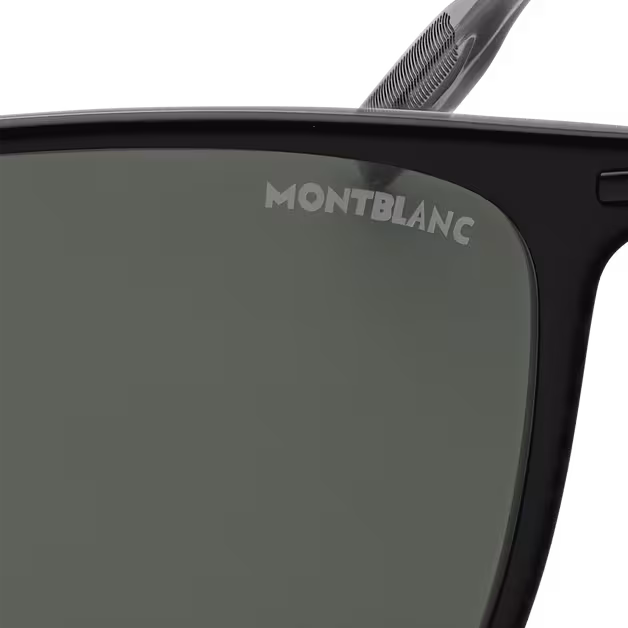 Ez a téglalap alakú napszemüveg fekete fröccsöntött kerettel és szürke lencsékkel rendelkezik. A fém szárak kialakításába a Montblanc Emblem hócsúcs-motívumot ágyazták. A Montblanc logó a bal lencsére, a csúszásgátló mintázat pedig az átlátszó szárvégek belső oldalára van lézerrel gravírozva a kényelem növelése érdekében.