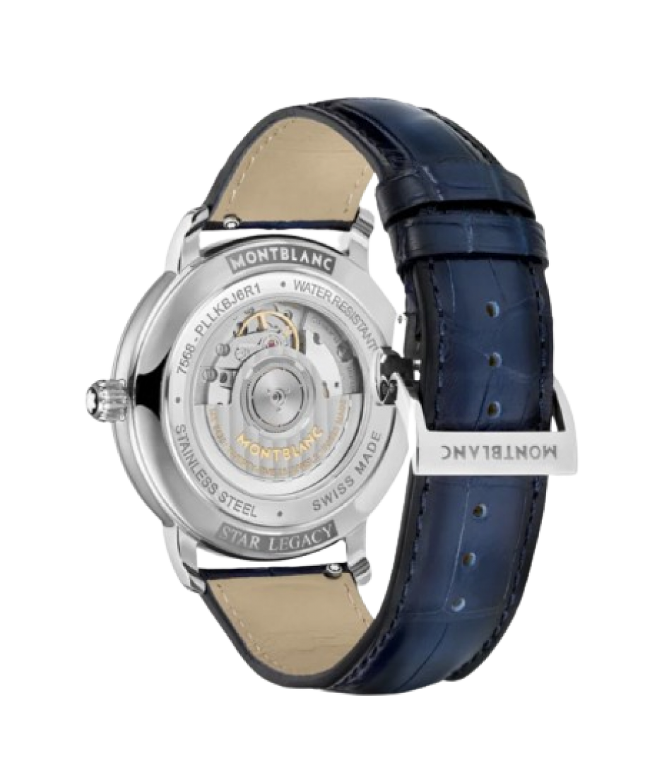 A Montblanc Star Legacy Full Calendar a Maison egyik legkelendőbb kollekciója, amely az idő, a napok és a hónapok nyomon követésének igényét tükrözi, amely a legkorábbi civilizációkig nyúlik vissza. Ez az új 42 mm-es modell új éjkék számlappal és a Maison cserélhető szíjrendszerével rendelkezik. Az időmérőhöz kék sfumato aligátor bőrszíj jár. Meghajtásáról a Montblanc újonnan átdolgozott Caliber MB 24.30 gondoskodik, amely számos fejlesztést tartalmaz a teljesítmény, az egyszerű beállítás és az olvashatóság terén.