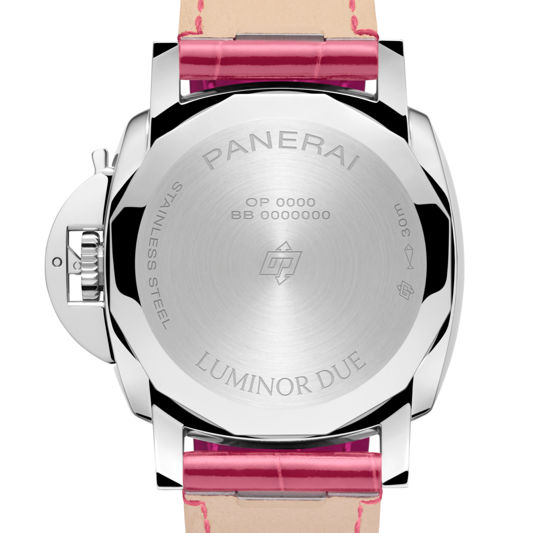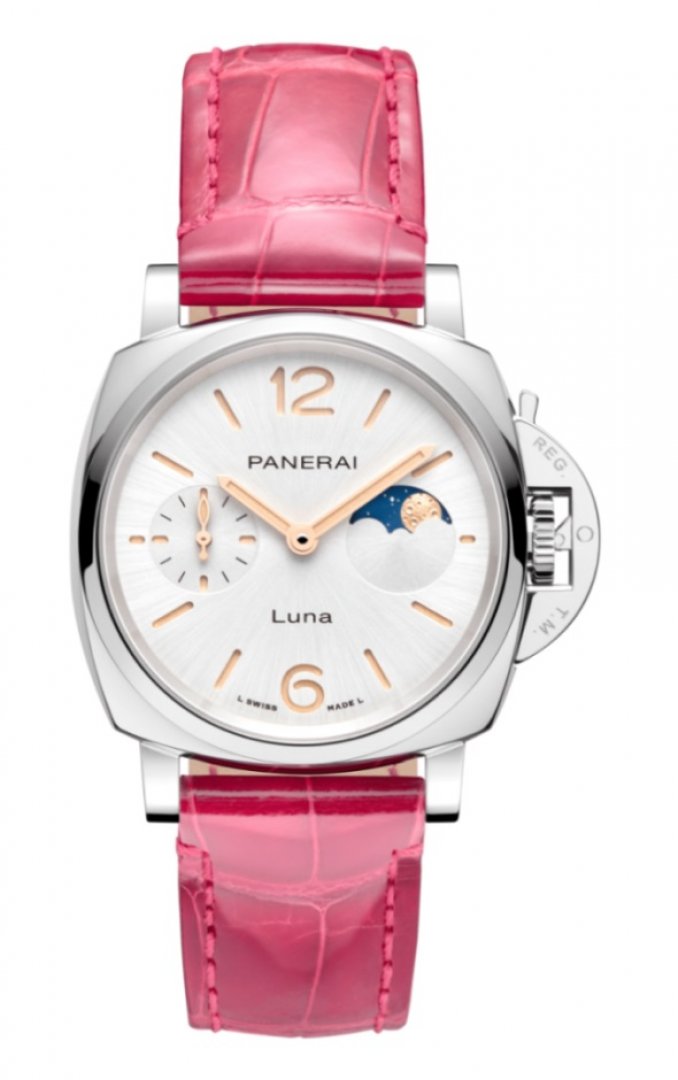 Női karórák luxus órák luxus karórák webshopja Panerai Luminor Due Luna 38mm automata fényes rózsaszín aligátor szíj.