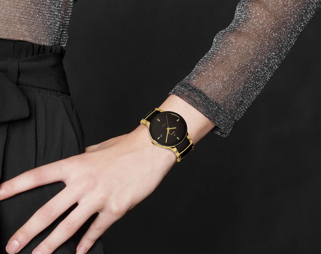 Női karórák luxus órák luxus karórák webshopja Rado Centrix Centrix Diamonds 38mm quartz acél tok PVD Acél titán kerámia csat.