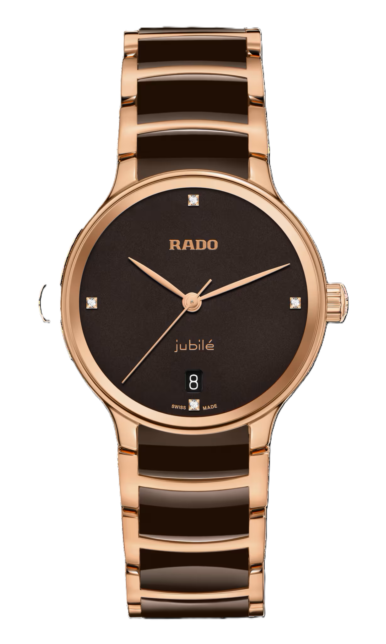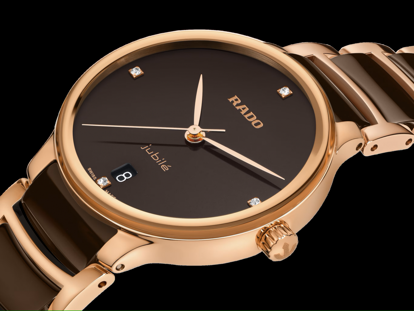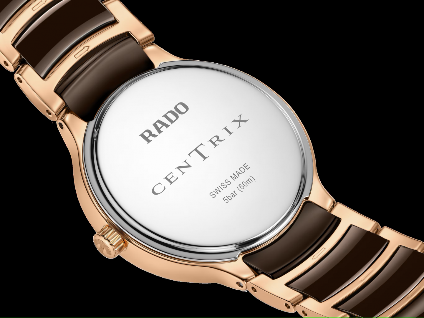 A klasszikus Centrix Quartz Diamonds órát nemcsak technikailag, hanem esztétikailag is átdolgozták. A módosított modell lekerekített zafírkristályt kapott, amely egészen a pereméig ér, és az ívelt tok egybeolvad az ívelt kristályperemmel. Az ikonikus óra általános megjelenését kiigazított tokfülek és egy polírozott rozéarany színű, PVD-bevonatú rozsdamentes acélból készült, fekete high-tech kerámia középső láncszemekkel ellátott csat teszi teljessé. A fekete lakkozott, 4 gyémánttal díszített számlap, amelyet a nyomtatott „jubilé” logó hangsúlyoz, tökéletesen illeszkedik a rozéarany színű mutatókhoz. Az R073 kaliberű kvarcmű PreciDrive és HeavyDrive funkcióinak köszönhetően az óra nagyobb pontossággal és ütésállósággal rendelkezik. Az óra 50 m mélységig vízálló.
