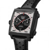 Az új Monaco Chronograph Stopwatch nem csupán egy óra, hanem egy időutazás a versenyek izgalmas pillanataiba. Megjelenésében visszaköszön a klasszikus Heuer stopperórák stílusjegye: a fekete, fehér és piros színkombináció. A számlapon fekete köralakú elrendezés különös hatást kelt a fekete szögletes tokkal együtt, amiben nagy szerepe van az ezüstös háttérszínnek. Többek között ennek is köszönhető, hogy a leolvashatóság minden körülmény között elsőrangú.