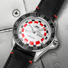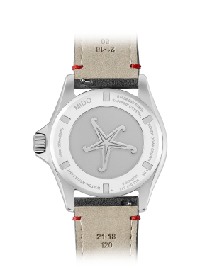 Az óra leglátványosabb eleme az ezüstös színű számlap, amelyet indexként funkcionáló piros-fekete kockázás tagol. A játékos grafika egy sportos megjelenést ad az órának és történeti utalást tesz a dicsőített hetvenes évek sportóráira. A számlapon a történelmi Mido felirat kapott helyet, amely megerősíti a retro összképet. Az enyhén kupola alakú, úgynevezett “glassbox” zafírkristály óraüveget mindkét oldalán tükröződésmentes bevonattal kezelték, ami nem csak a funkcionalitást szolgálja, hanem szépen kiemeli a számlap textúráját. A mutatók és az indexek fehér Super‑LumiNova bevonattal lettek kezelve, így a számlap sötétben is jól olvasható.