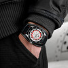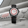 Az óra a modellcsalád hírnevéhez hűen 200 méteres mélységig garantált vízállósággal rendelkezik, ami a hétköznapi viselettől a vízi programokig magasfokú biztonságérzetet ad. Az óra fekete úgynevezett Bund stílusú bőrszíjjal érkezik, amely a régi pilótaórák örökségét idézi. Ez a bőrszíj eredetileg hadászati alkalmazásban terjedt el, mivel az óratok és a csukló között elhelyezett extra bőrréteg kényelmesebb viseletnek bizonyult tartós repülés közben. A bőrszíj védelmet nyújt az óratok felforrósodásával, a túlzott testnedvképződéssel és a vibrációkkal szemben. Amennyiben az alkalom megköveteli, a két részből álló moduláris Bund bőrszíjat visszaalakíthatjuk egy közönséges bőrszíjjá.