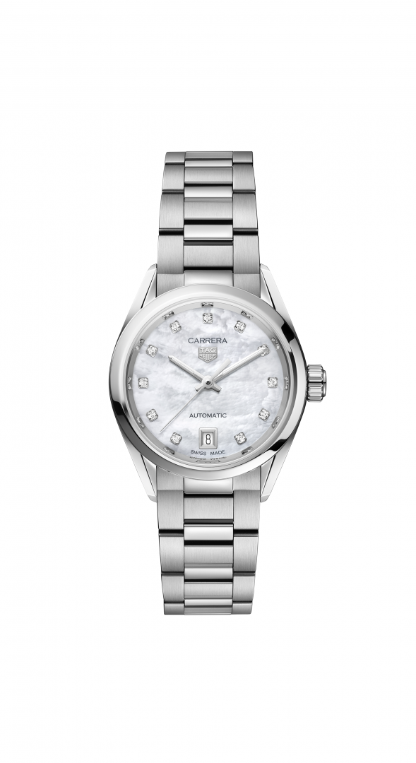 Luxus órák TAG Heuer Carrera 29mm acél tok gyöngyház számlap gyémánt berakás.