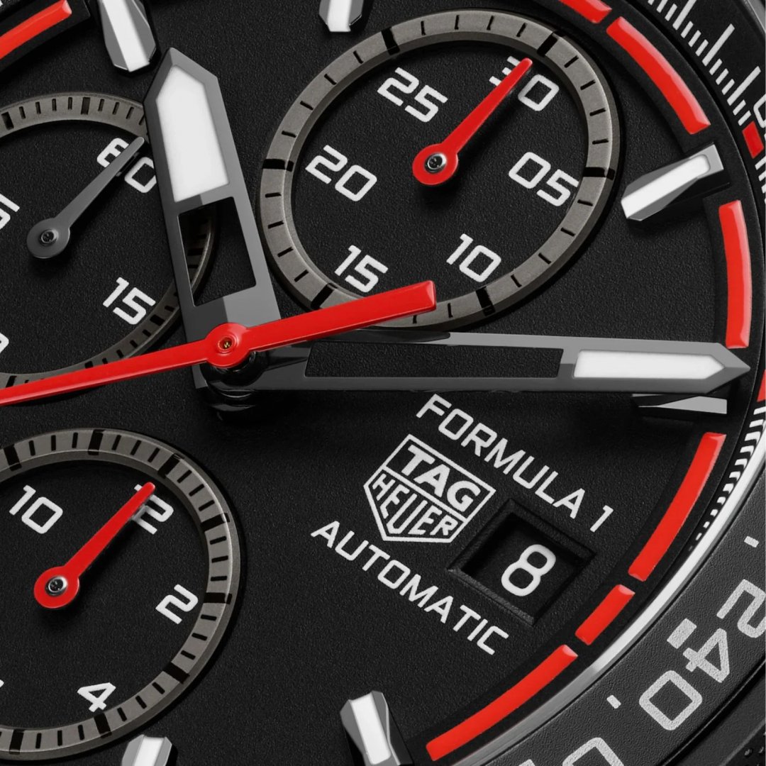A merészeknek tervezett 44 mm-es TAG Heuer Formula 1 Chronograph a versenyzés szellemiségét hozza a csuklóra. A 2-es osztályú titánium tok, a piros díszítések és a strapabíró gumipánt olyan időmérőt alkot, amely készen áll minden kihívásra.