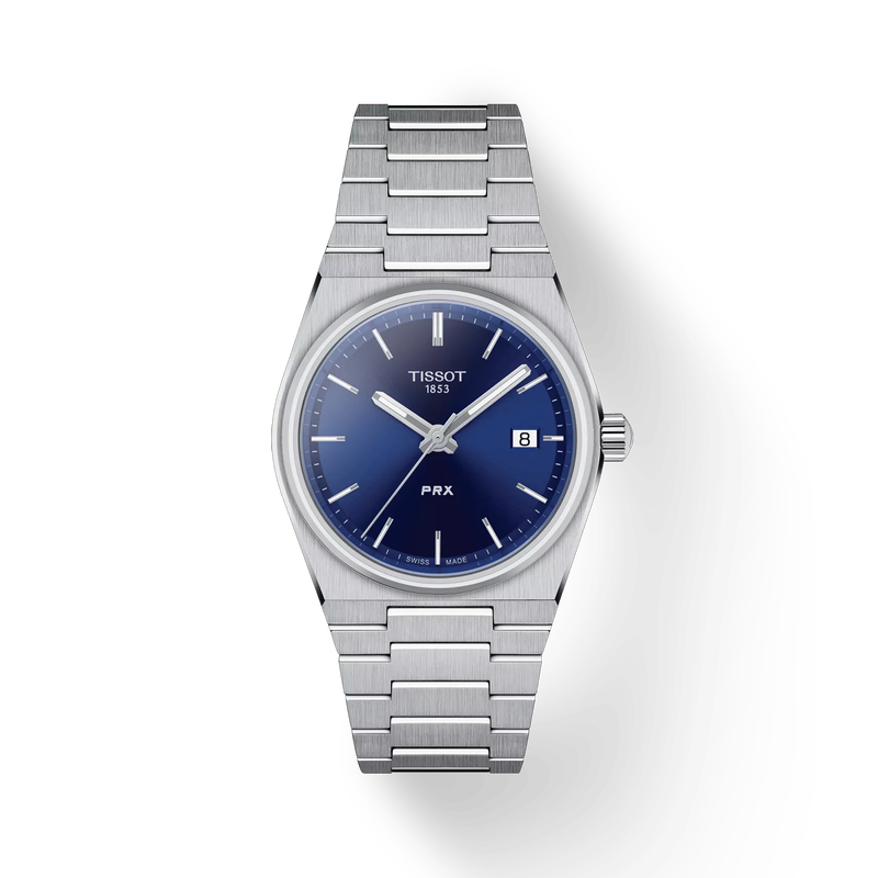A Tissot PRX Quartz T137.210.11.041.00 egy modern, uniszex modell, amely az 1970-es évek ikonikus dizájnján alapul, és elegáns, kompakt, 35 mm-es formátumban jelenik meg. Beépített karkötőjével, tiszta vonalaival és feltűnő kék számlapjával az óra retro-modern megjelenést kölcsönöz.