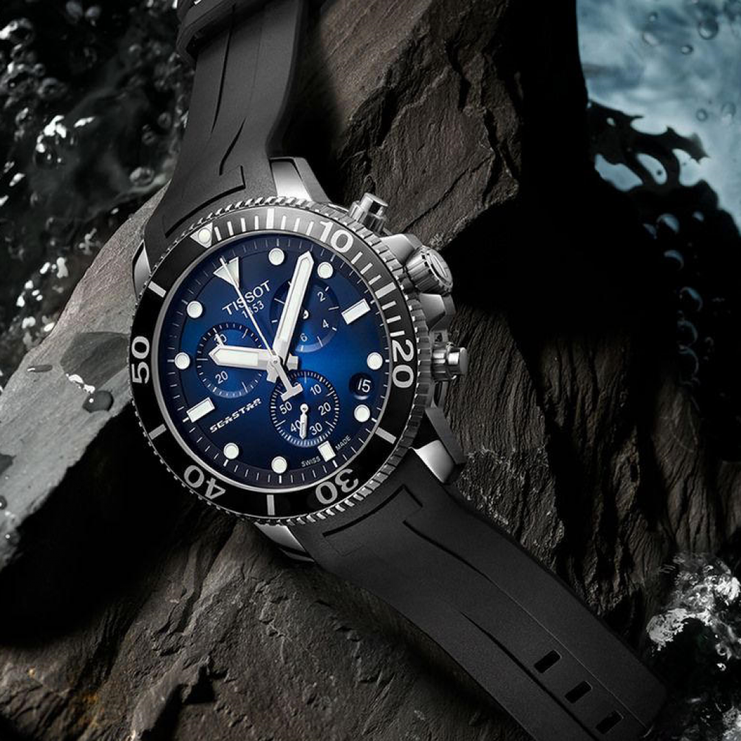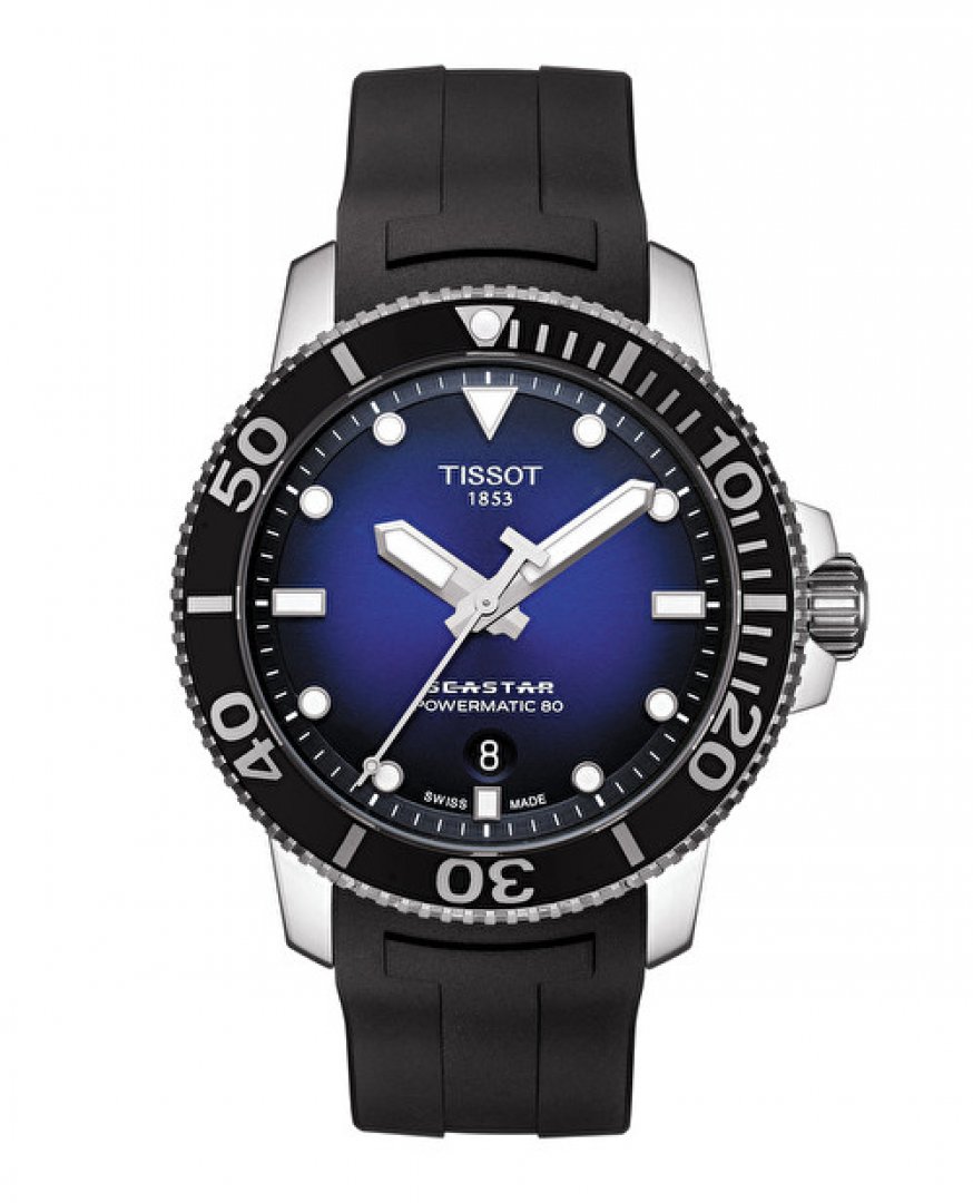 Férfi órák luxus órák luxus karórák webshopja Tissot SEASTAR 1000 POWERMATIC 80 43mm acél tok gumi szíj.