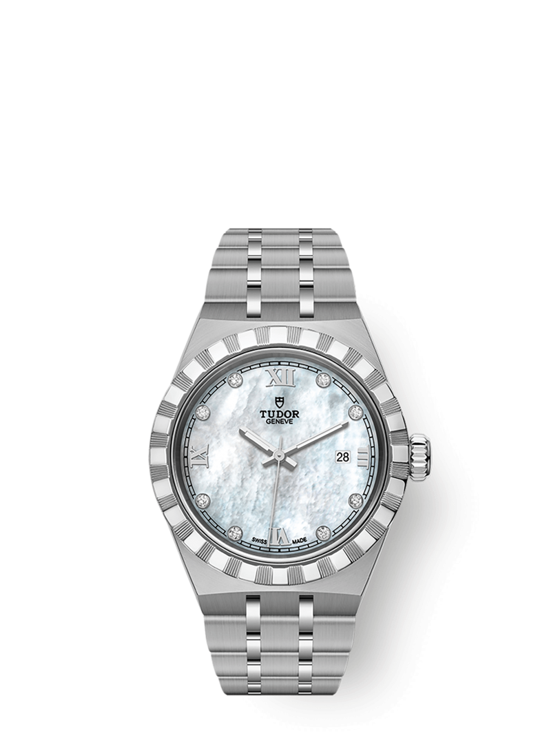 Tudor Tudor Royal 28mm acél tok és csat gyöngyház számlap gyémántok.