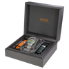 Az óra háromfajta szíjjal érkezik: egy rozsdamentes acélszíjjal, amikor ellenállóságra, egy kék varrással díszített fekete bőrszíjjal, ha egyediségre vagy egy narancs gumiszíjjal, amennyiben sportosságra vágyunk. Mindezt egy egyedi, a mexikói Halottak Napja ünnepének hangulatát idéző díszdoboz tartalmazza.